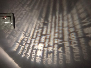 При близком подсвечивании любым источником света, он создает удивительную световую проекцию слов “Я тебя люблю” на 100 языках мира, включая украинский, русский языки.
